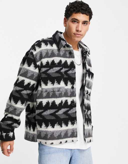 Can be worn as a jacket or shirt. Womens Aztec Shacket Button Down Boho Western Retro Distressed Shirt Jacket.